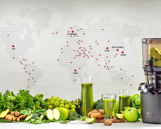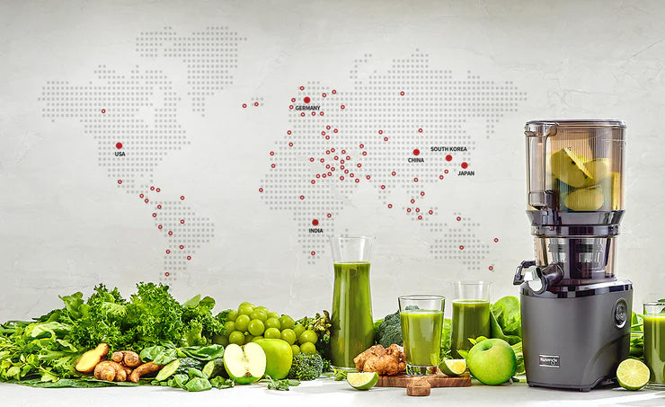Nuestros productos, como el primer exprimidor lento vertical del mundo, son un testimonio de nuestra visión de futuro. Kuvings continúa superando los límites con tecnología de vanguardia, con el objetivo de que preparar jugos saludables sea aún más conveniente.