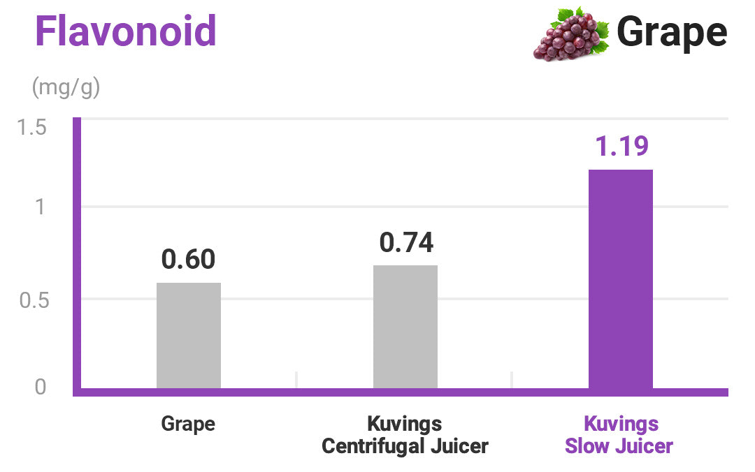 El jugo extraído del extractor de jugo lento tiene el mayor contenido de flavonoides como resultado del jugo extraído de las pieles y semillas de la uva.