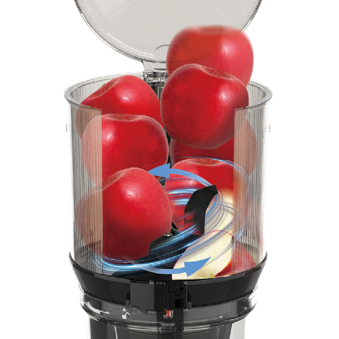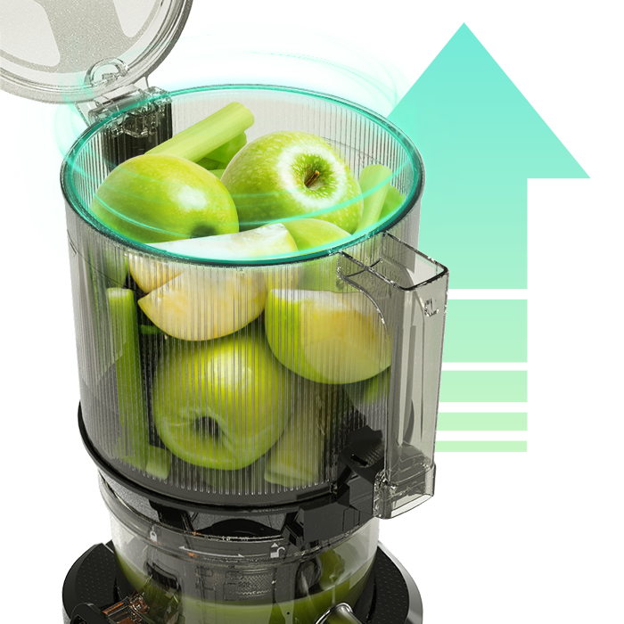 Al utilizar el contenedor automático de 3000 cc con la capacidad más grande del mundo, puede colocar frutas y verduras grandes enteras sin cortarlas, ahorrando tiempo en la preparación de los ingredientes.